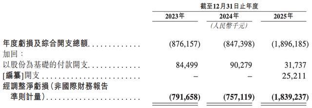 按非国际财务报告准则计量,斑马智能的经调整净亏损分别约为7.92亿元、7.57亿元和18.39亿元。其中,2025年的亏损金额创新高,且较2024年扩大1.4倍。过去三年,斑马智能的累计亏损约为34亿元。